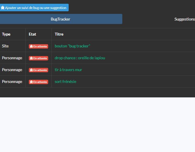 Ce n'est pas un bouton, ce sont des onglets (il y en a 3 au total : BugTracker, Suggestion, Annulé et Terminé) ![]()